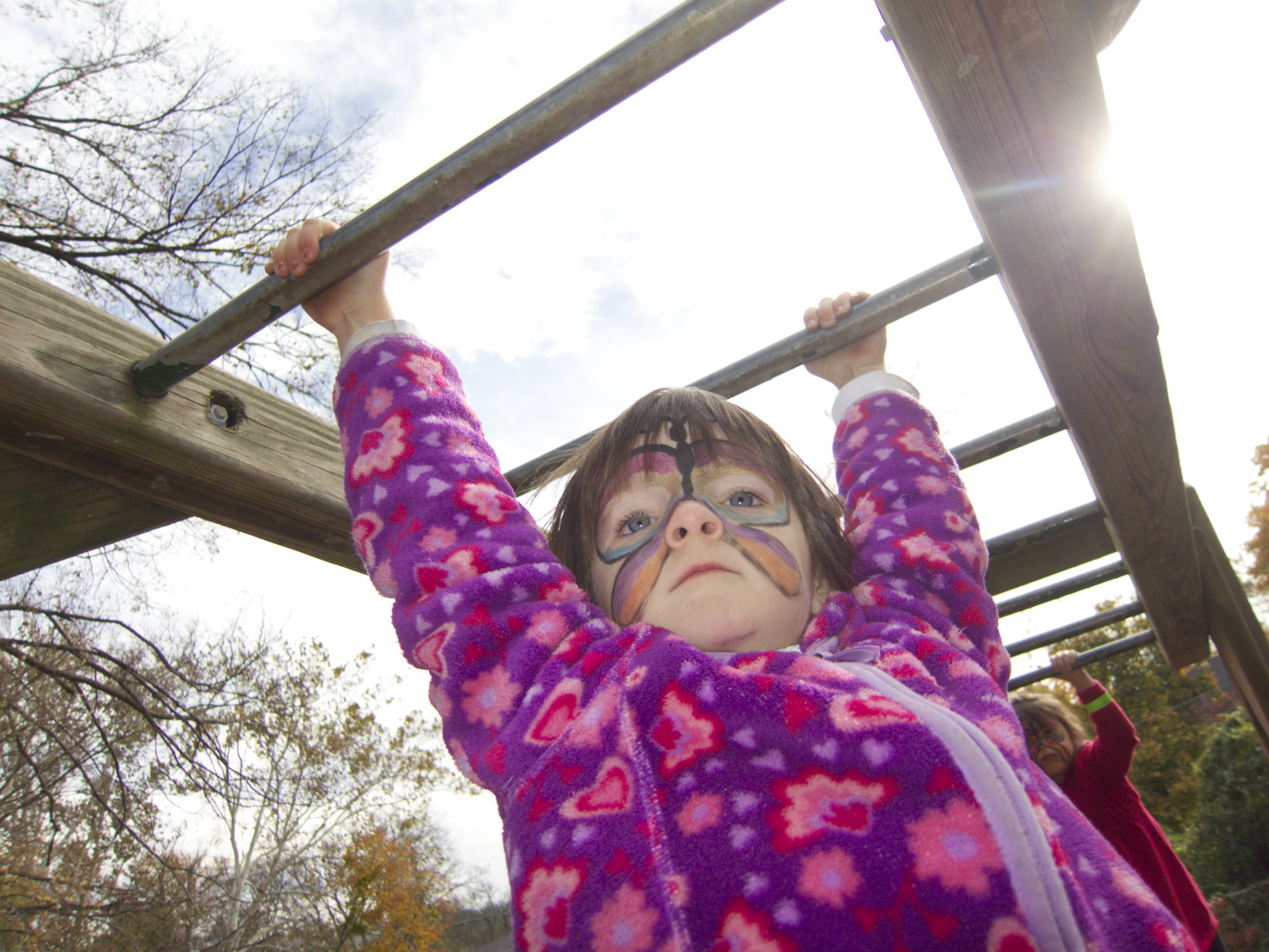 Any time I drop her off for pre-school, she always wants to show me her latest victory. All the way across? Done. Backwards? Check. Skipping a rung? Working on it.