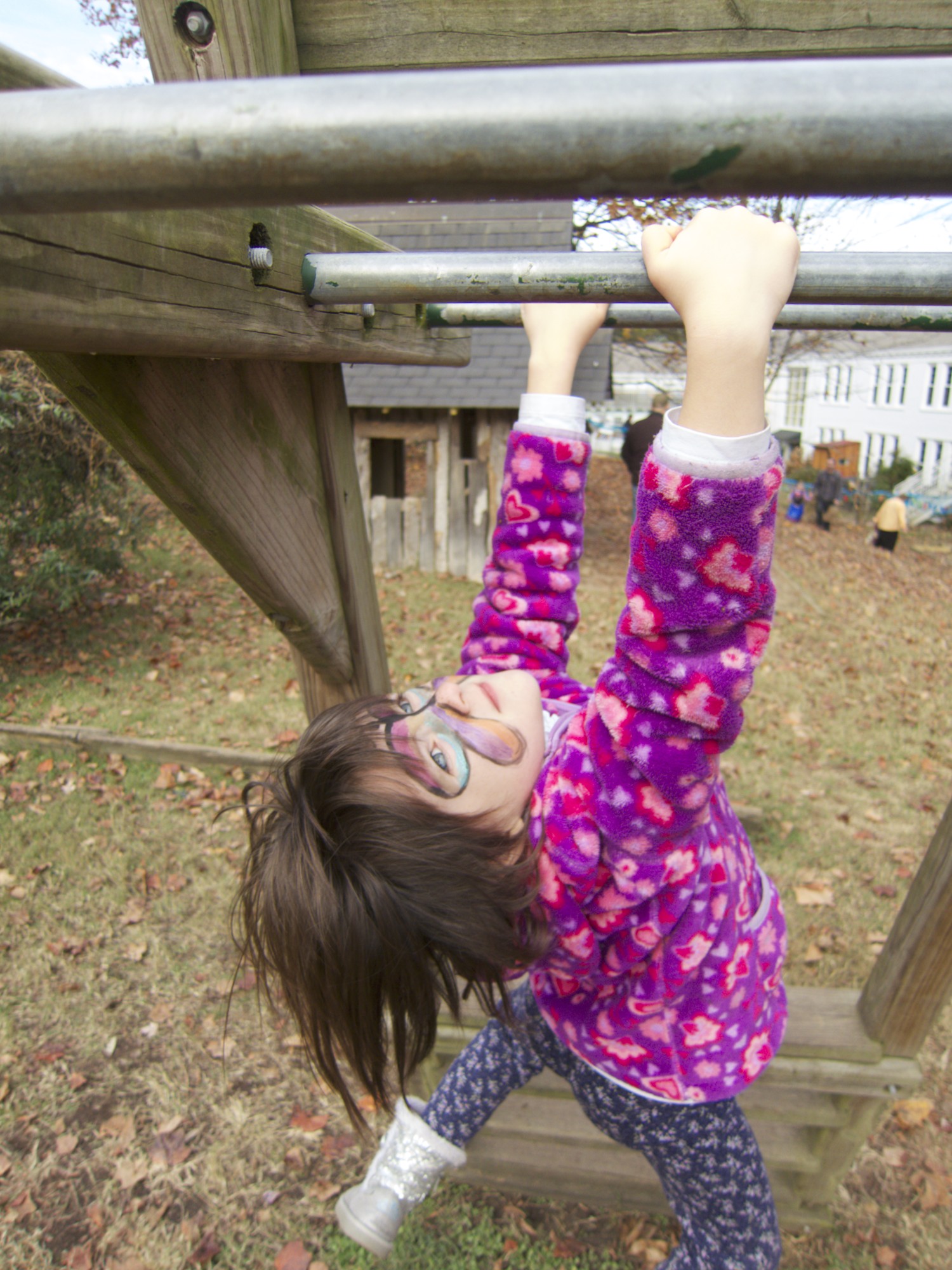 If you can’t tell from my recent posts, I’m caught up on my photos. So many posts will be recapping things in the past such as these shots taken at Evie’s school. Her favorite thing on the playground is the monkey bars and she does it with determination, grit, and a little bit of style. Is it a coincidence that Kymberlee calls her “monkey” as a term of endearment? Somehow I think not.