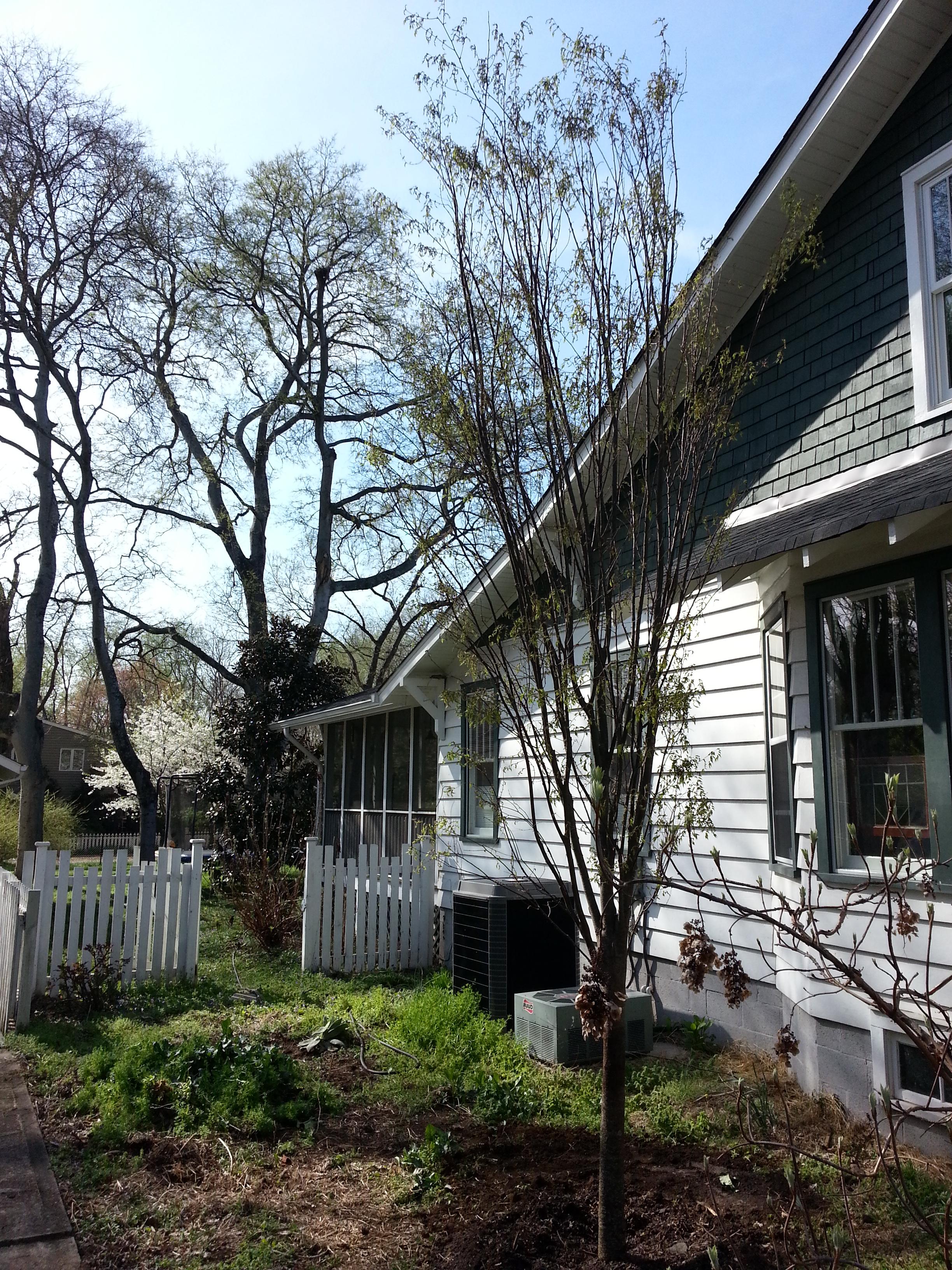 So what do I do when I have a hangover? Avoid people and work really hard. In this case, it meant digging a 3 ft. deep and 3 ft. wide hole for our new tree. I had dug this hole last weekend, but when the tree was delivered Friday, I heard echoes of Jaws – we’re going to need a bigger hole.