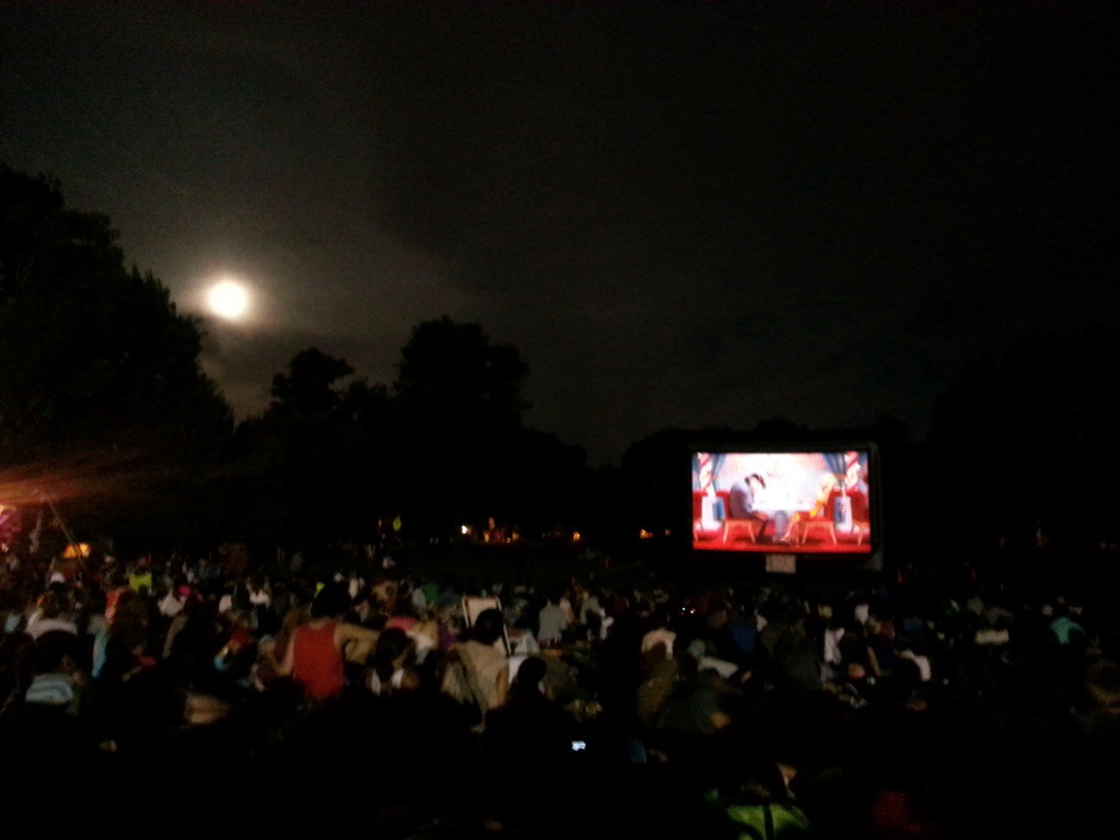 Sitting in a park, watching the sun set. Surrounded by food trucks, including retro sno (snow cones), confeastador (Mexican influenced healthy food), and of course pizza, kettle corn, and cupcakes. Waiting for the movie (Dispicable Me 2) to start. Enjoying friends, neighbors, and even babysitters, none of whom did I know beforehand would be here. Life is good. Did I mention the growler of Turtle Anarchy Another Way to Rye? Life is great!