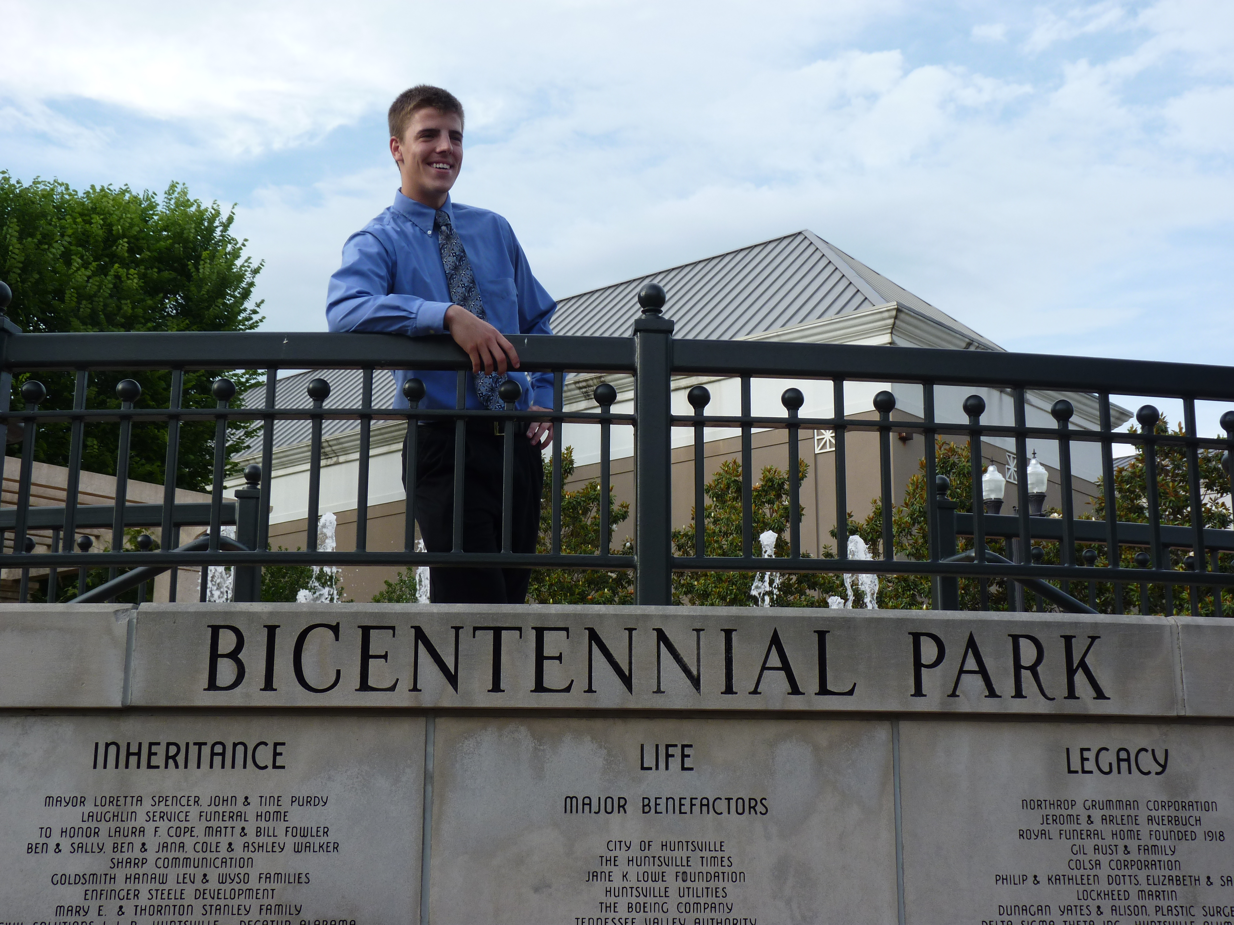 The site selected was a nice little park in downtown Huntsville with beautiful fountains. It was just like Daniel to find something beautiful and free. He doesn’t look nervous at all, does he?