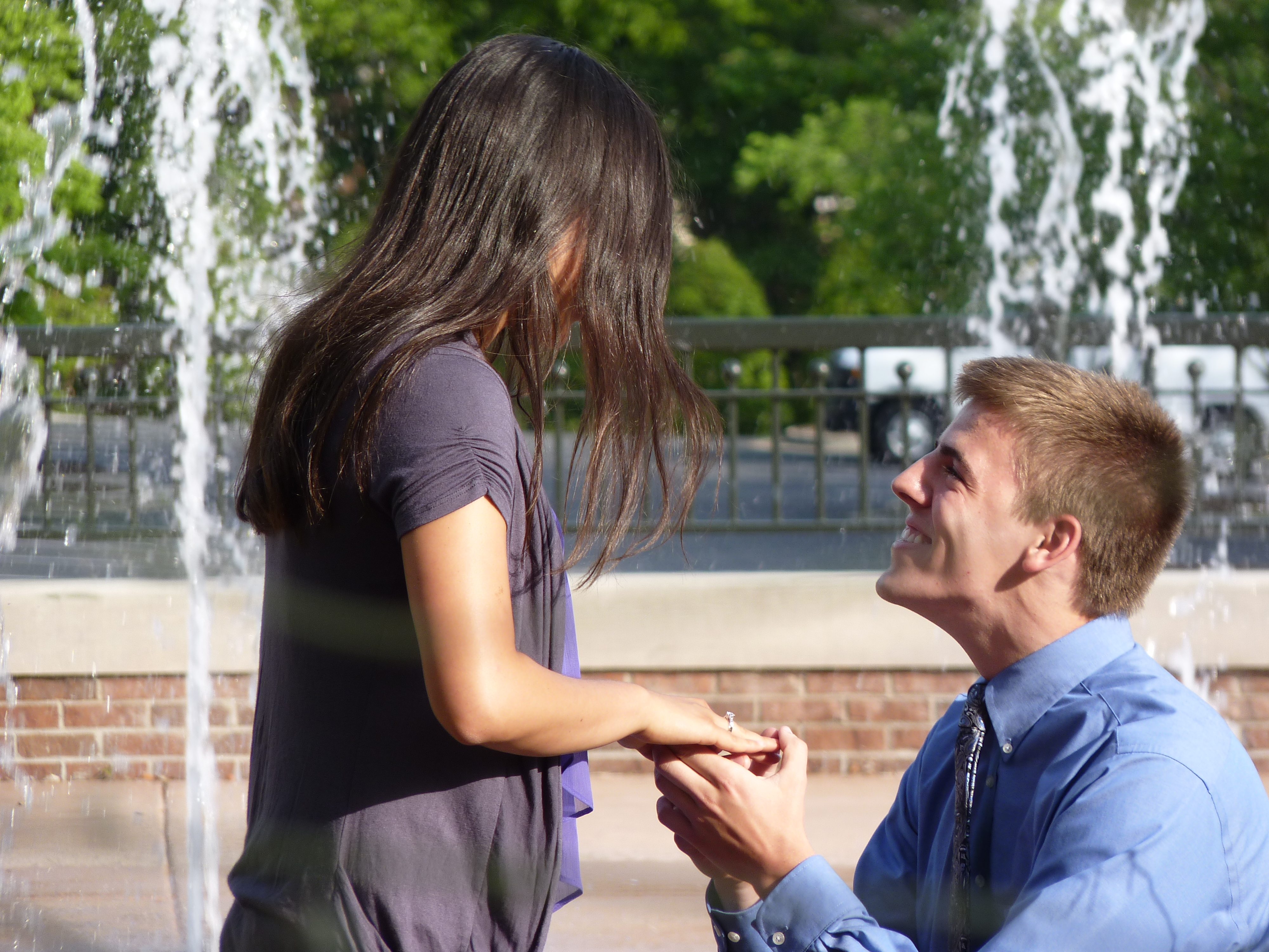 Being the traditionalist that he is (and he even had her father’s permission), he gets down on one knee to pop the question.