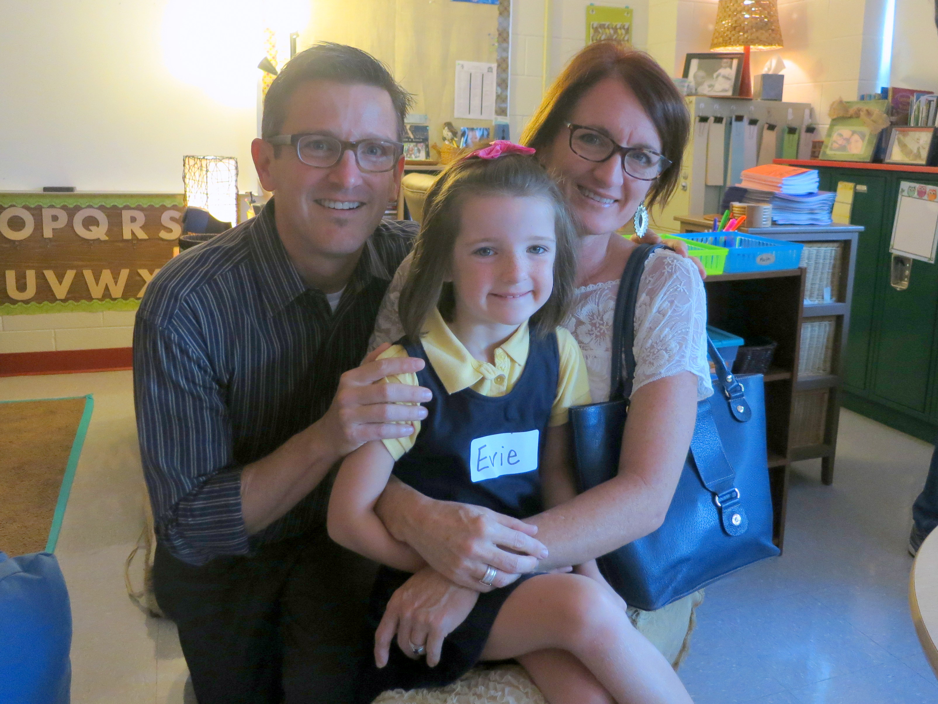 We like her teacher, Ms. Dukes, and she is an adherent of the “no fluorescent lighting” gang. We took some quick pictures and said goodbye, joined other parents in the library (oops, I mean media center…), and grabbed some free coffee and donuts. So much for day one. Now I start thinking ahead to day 2799 and rolling my wheelchair into the graduation ceremony!