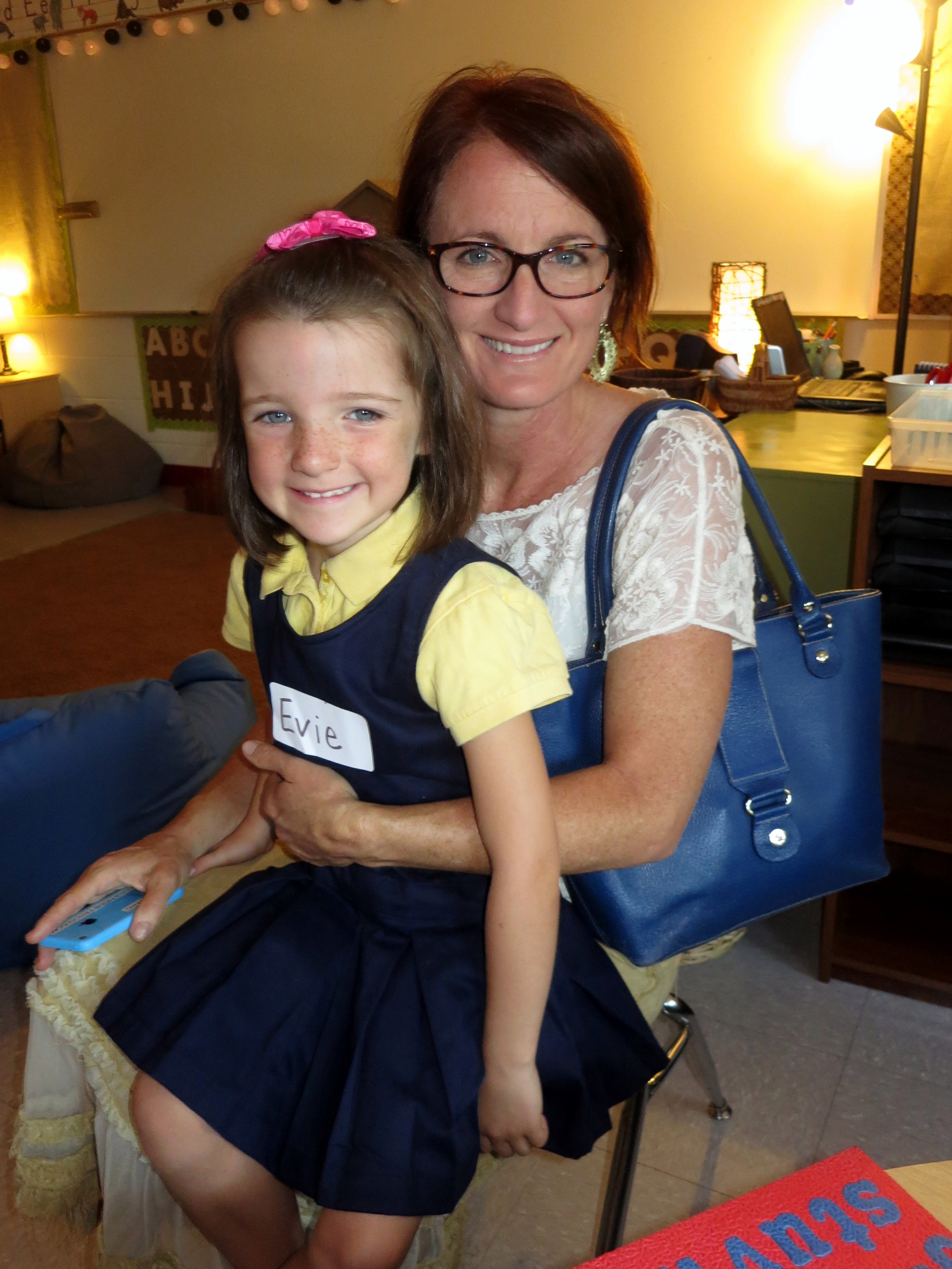 It all seems so anticlimactic. After 5 preschools in the last 3 years, adding the first Kindergarten day seemed like a repeat of other first days, just in a larger place. Evie even seemed nonplussed about it. Though it did take some wrangling, we all got ready on time and I had to admit she looked darned cute in her uniform and backpack.