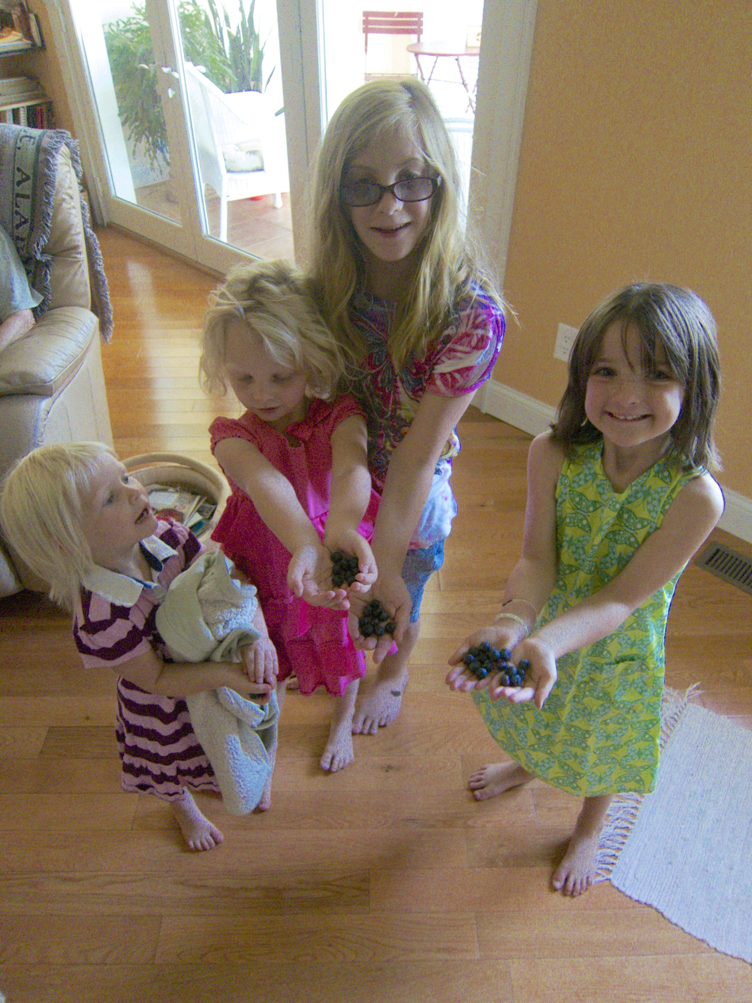 It starts with the morning delivery of blueberries. Who can resist these faces or the plump berries?