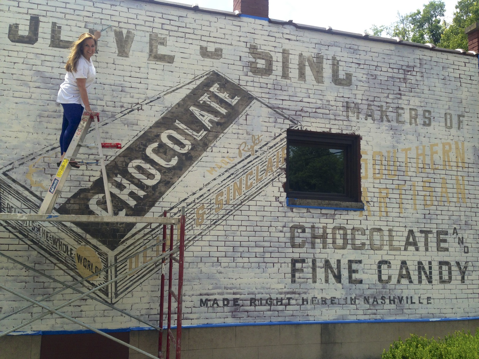 Telicia Montague does incredible murals. A friend of ours, she recently did a faux old mural for Oliver and Sinclair, a Nashville chocolatier. This is why we love Nashville!