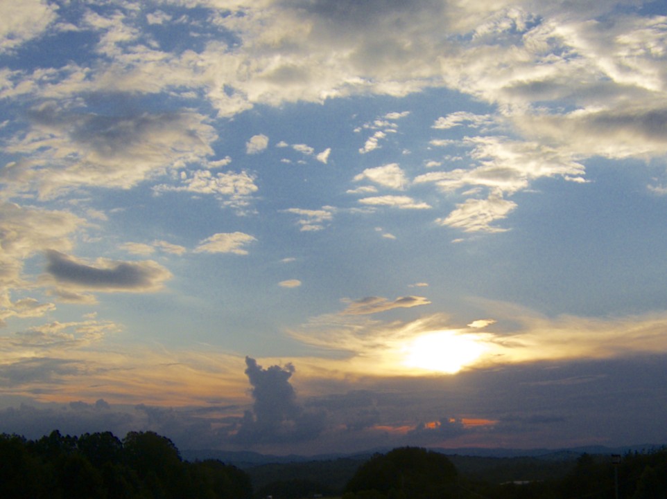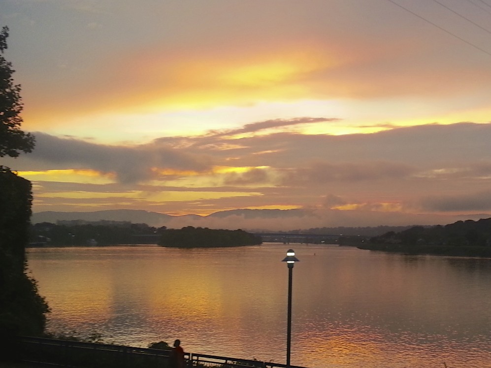 We stopped for a nice dinner in Chattanooga, watching the sun set over the mountains and the river at The Boathouse. We were blessed with great skyscapes the whole weekend, with this view being typical.