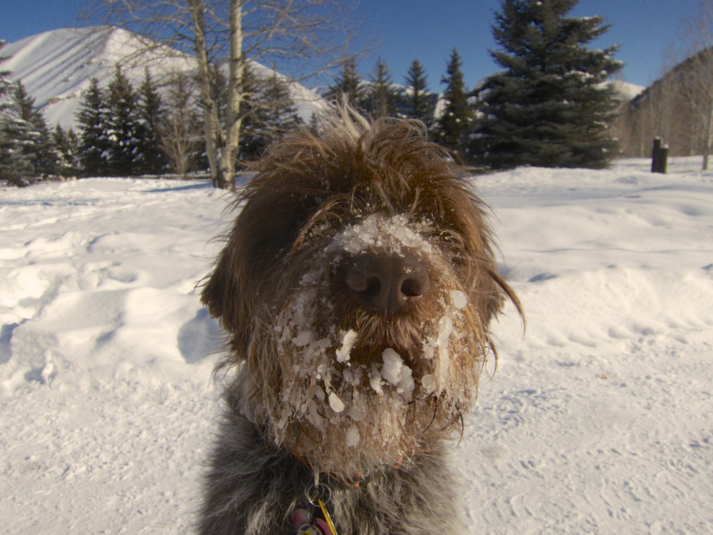 My in-laws have what might be called a mini-ranch. In the summer there are horses, but in the winter all that is left is their two dogs and one cat. The three of them manage to amuse us with both their energy and their playfulness. The dogs love to go on hikes outside, even in the cold weather. Doesn’t Solo look happy?
