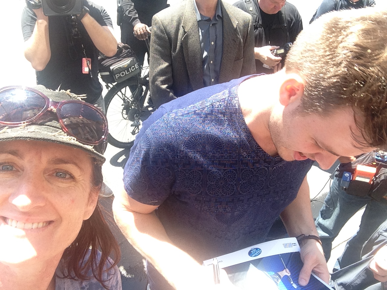We waited patiently with a few other fans, including one that had scored a window ledge and was the only one with a poster.