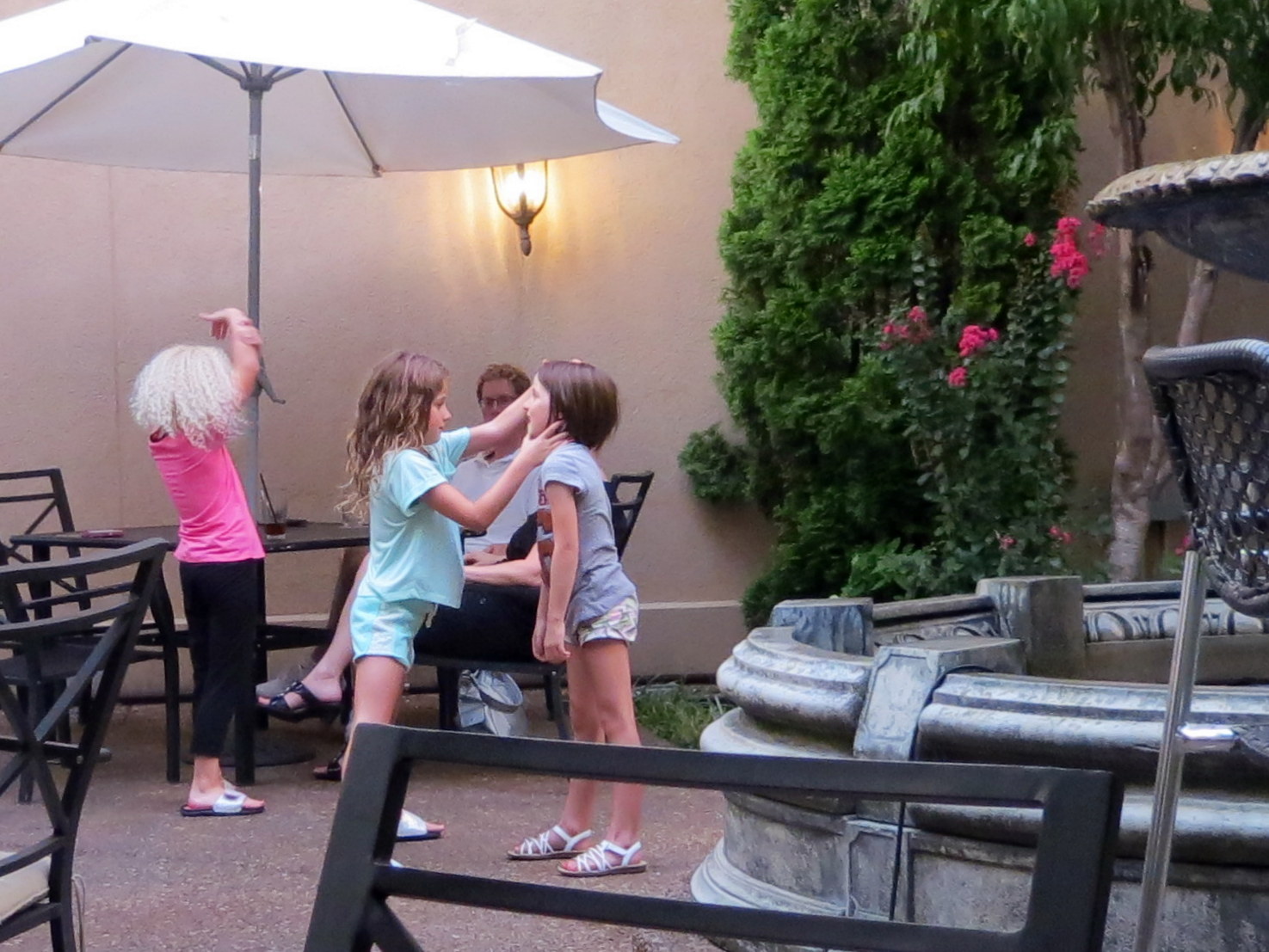 So what else did Paducah have to offer us the first night? Another nice surprise, it turns out. We headed down to the riverfront for dinner and ended up finding a nice patio with a fountain, live cheesy music, and two other young girls! Plenty of pennies went in to the fountain that night, and Evie ended up with two new friends. The adults were able to have great conversation and the kids thoroughly enjoyed playing together for a solid two hours!